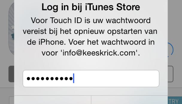 Je kunt ook in de App Store afrekenen met je vingerafdruk. Dat is werkelijk ideaal. Je hoeft dan niet steeds het wachtwoord van je Apple ID in te tikken. Vraagt je telefoon toch steeds om een wachtwoord? Zet via Instellingen / Touch ID en toegangscode het schuifje iTunes en App Store even aan. Tik vervolgens het wachtwoord van je Apple ID in zodra erom gevraagd wordt.