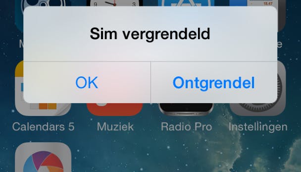 Na het aanzetten van je iPhone kan het gebeuren dat je niet kunt bellen en geen mobiel internet hebt. In de statusbalk staat dat de sim vergrendeld is. Wat nu? Je kunt de telefoon opnieuw opstarten, maar dat duurt even. Gelukkig kan het ook in een paar seconden opgelost zijn. Bij het opstarten vraagt de telefoon of je de simkaart wilt ontgrendelen. Je kunt dan kiezen tussen Ok en Ontgrendelen. Gewoontegetrouw zijn we gewend om snel op Ok te drukken en daarmee blijft de sim dus vergrendeld. Gelukkig is er niets aan de hand. Je kunt de pincode alsnog opgeven via Instellingen / Telefoon / Simpincode.