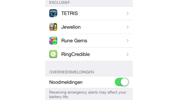 Elke eerste maandag van de maand klinken om twaalf uur 's middags de sirenes. Gebeurt het op andere momenten, dan is het zaak om direct de berichtgeving van de overheid te volgen. Nu lopen we tegenwoordig met smartphones rond en kun je noodmeldingen ook rechtstreeks op je iPhone ontvangen. Ook dit wordt af en toe getest, al is dat niet elke maand. Ontvang je geen noodmelding? Activeren gaat via Instellingen / Berichtencentrum. Blader helemaal naar omlaag en activeer Noodmeldingen. Je hebt hier minimaal een iPhone 4s voor nodig. Daarnaast werkt het (nog) niet via het 4G-netwerk.