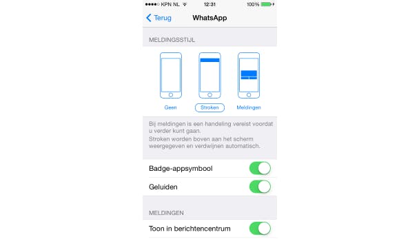 Per app is in te stellen of en hoe je meldingen krijgt.
