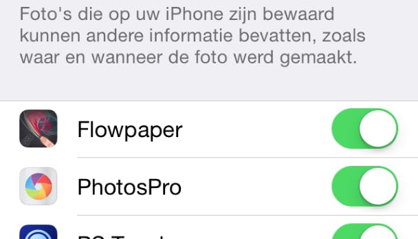Geef foto-apps toegang tot de filmrol en je locatiegegevens.