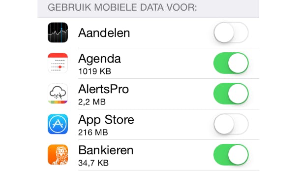 Je kunt zien hoeveel dataverkeer apps veroorzaken.