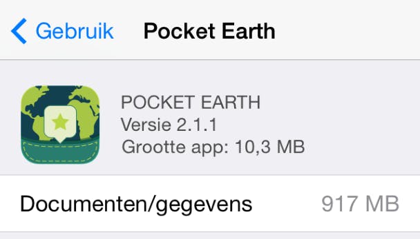 Het nadeel van geheugen is dat het altijd vol raakt, hoeveel je ook hebt. Apps worden steeds mooier en kunnen alsmaar meer, maar ze worden daardoor ook steeds groter. Ook hebben sommige apps enorm veel gegevens aan boord. Bijvoorbeeld gedetailleerde wegenkaarten die je hebt gedownload, of films die je hebt geschoten. Als jouw iPhone dichtslibt, kun je via Instellingen / Algemeen / Gebruik achterhalen wat de grootverbruikers zijn. Hopelijk kun je enkele apps die je toch niet (meer) gebruikt direct van je toestel halen. Tik op een app en je ziet hoeveelheid gegevens het heeft opgeslagen. Is dat veel? Wil je de app niet kwijt, probeer dan om binnen de app wat data op te ruimen.