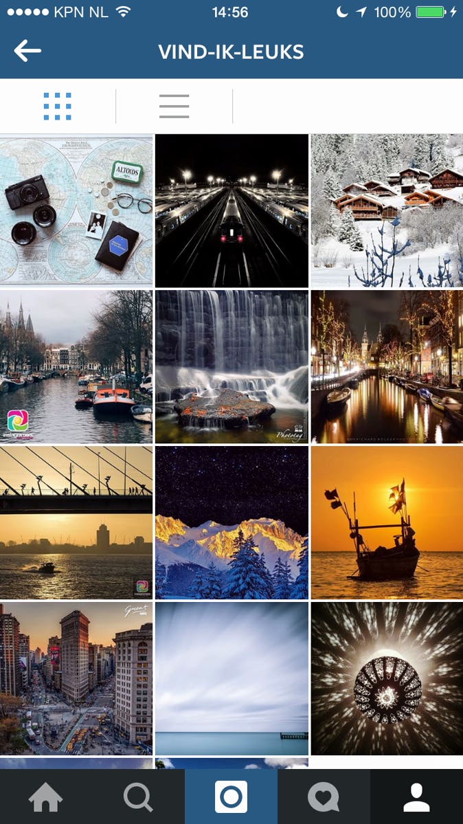 Op Instagram kun je heerlijk ronddolen tussen prachtige foto's en een kijkje nemen in het leven van anderen. Tik linksonder op het vergrootglas om een stroom van recente foto's te zien. Rechtstreeks zoeken kan ook via het invoerveld boven aan het scherm. Via tabbladen kun je op Gebruikers en op Hashtags zoeken. Zo ontdek je snel het mooiste beeld en de interessante mensen om te volgen. Let tijdens het bekijken van foto's van anderen ook eens op de bijschriften en hashtags die ze gebruiken. Zo leer je hoe je jouw foto's nog beter vindbaar maakt en kun je soortgelijk beeld makkelijker opsporen.