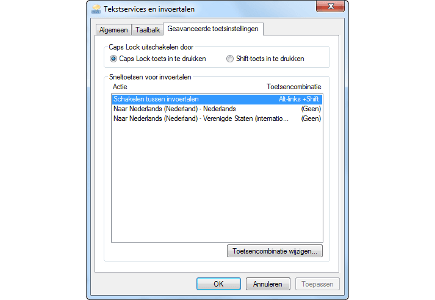 Met de toetscombinatie Alt+Shift zet u het toetsenbord in een andere taalmodus.