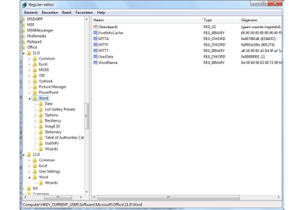 Als u de 2003-versie van Word nog gebruikt, bestaat de kans dat bugs de kop opsteken die ervoor zorgen dat het programma blijft crashen en in sommige gevallen niet eens wil opstarten. Wanneer Word tijdens het opstarten blijft crashen en daarbij wordt gemeld dat uw pc onvoldoende geheugen heeft terwijl dit duidelijk niet het geval is, kunt u dit herstellen door een waarde aan te passen in het register. Klik op Start en typ regedit in het invoerveld. Blader nu naar HKEY_CURRENT_USER\Software\Microsoft\Office\11.0\Word. In de map Word ziet u de map Data. Verwijder deze map en sluit de register-editor. Wanneer u Word vervolgens weer opnieuw start, zal de datamap opnieuw worden aangemaakt en is het probleem verholpen. Overigens is het altijd raadzaam om een back-up van uw systeem te maken, voordat u zaken in het register aanpast. Als daar iets bij misgaat, kan dat bijzonder vervelende gevolgen hebben.
