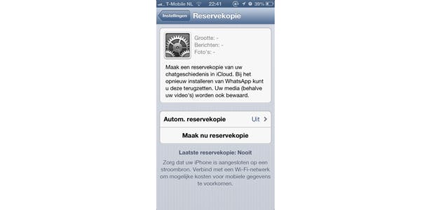 Misschien wil je juist helemaal niet de geschiedenis weggooien en wil je er juist alles aan doen om ervoor te zorgen dat die geschiedenis bewaard blijft. In dat geval is er (sinds kort) de mogelijkheid om een reservekopie van je chatgeschiedenis te maken, bijvoorbeeld in iCloud (voor WhatsApp op de iPhone uiteraard).