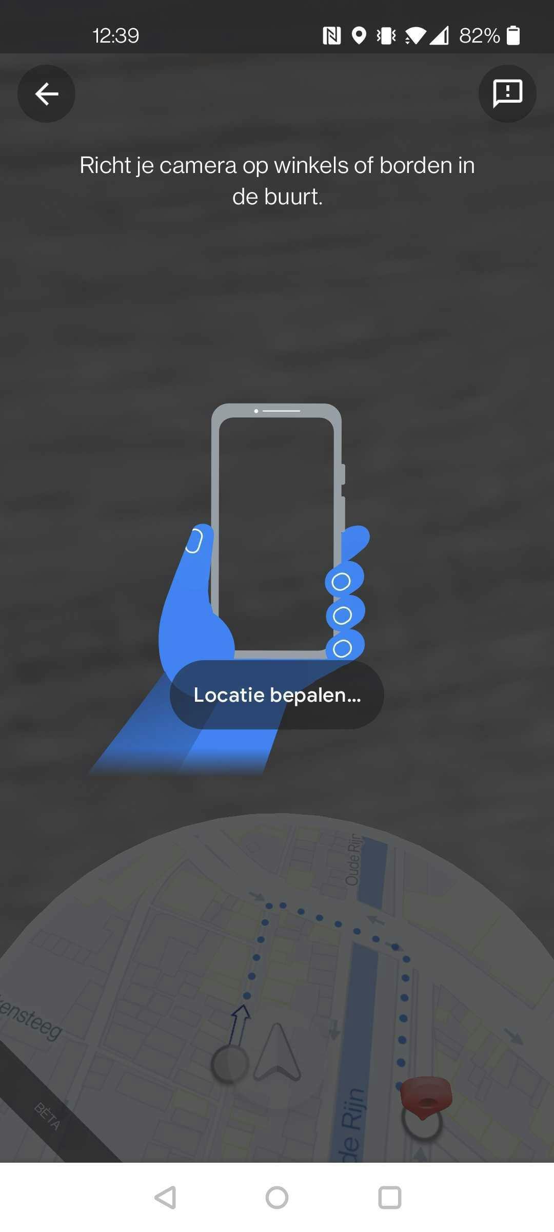 Draai rond met de camera tot Maps herkent waar je staat - het helpt om grote gebouwen, kruispunten of andere herkenbare plekken te nemen. Vooral in steden zou het geen problemen moeten opleveren, via de GPS-locatie van je telefoon snapt Google doorgaans prima waar je ongeveer staat.
