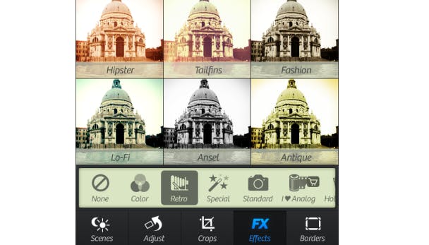 Je plukt een foto uit het virtuele rolletje en selecteert dan op het scherm één van de vele effecten. Door daarna te vegen, bepaal je de variabelen die je wenst aan te passen. Door een horizontale veeg wijzig je vaak de witbalans en het contrast. Veeg verticaal om een andere variabele te kiezen, en veeg vervolgens weer horizontaal om deze variabele aan te passen. Het is even wennen aan de manier van werken, maar het duurt niet lang voor je aan de lopende band je creatieve lusten kan botvieren op de foto's.