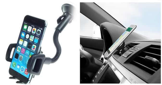 Het aanbod in telefoonhouders is talrijk maar de meesten zijn onder te verdelen in twee categorieën; zuignap-houders en houders die je op de ventilatie-uitgang of in je 12V-ingang plaatst.