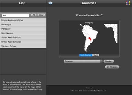 Wie vorig academiejaar geen goede resultaten behaalde voor aardrijkskunde, kan alvast alle landen van de wereld inoefenen met deze applicatie. Naast de ligging op de kaart kun je ook extra info oproepen via Wikipedia.