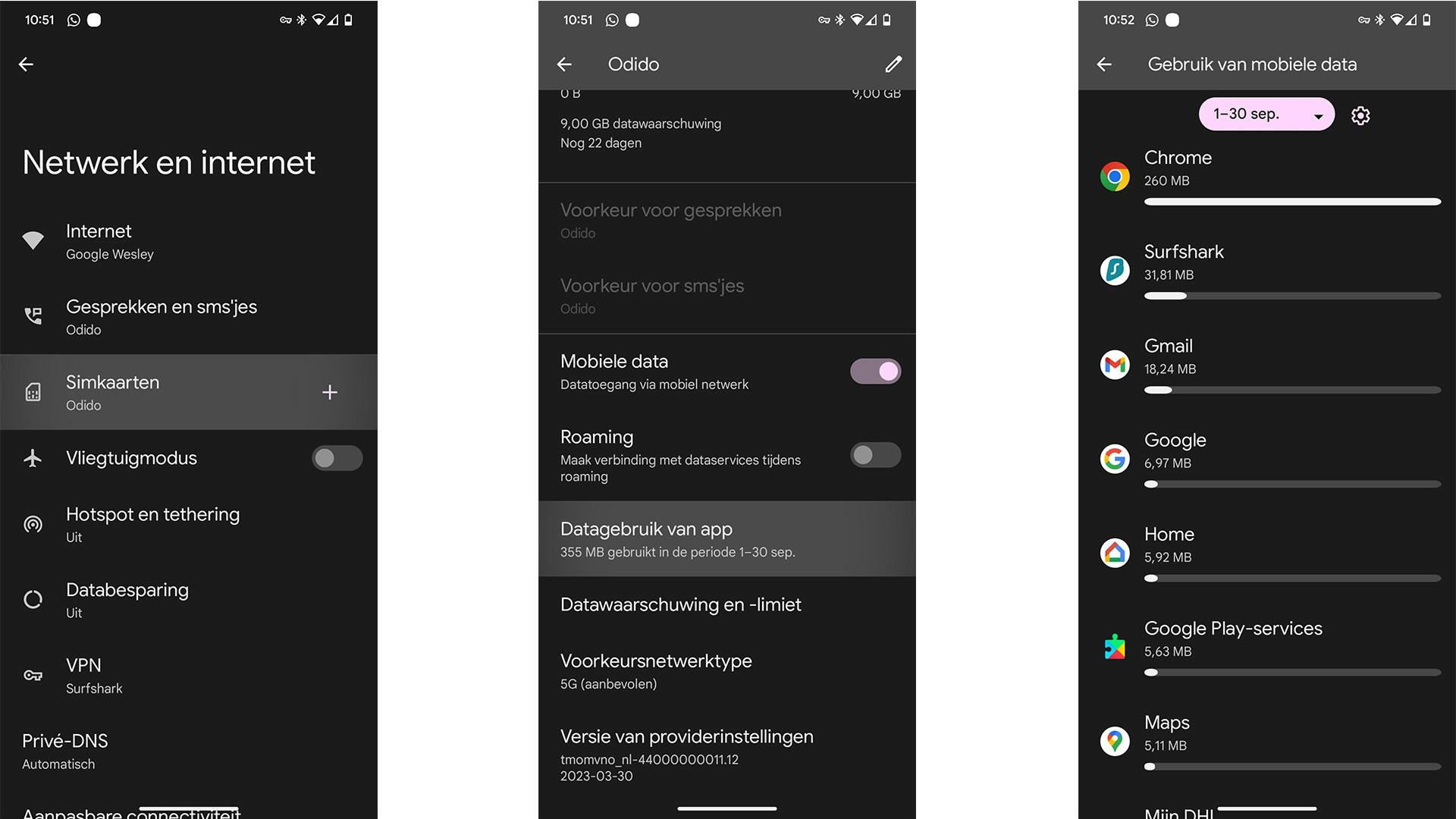 Nu zie je een lijst met apps die van je mobiele data gebruik hebben gemaakt. In principe kom je hier vaak apps tegen als Google Chrome, YouTube, Spotify en – als je het heel bont maakt – WhatsApp. Maar mocht er een app tussen staan die je niet kent of vertrouwt, of eentje die plotseling meerdere gigabytes per maand verbruikt, dan ben je mogelijk dus de pineut. Verwijder de app als je het niet vertrouwt (maar pas op dat het geen systeemapplicatie is).