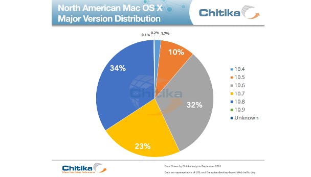 In september dit jaar zag de OS X-versieverdeling er zo uit, met Mountain Lion maar net groter dan Snow Leopard en zelfs het antieke Leopard nog met enige omvang: