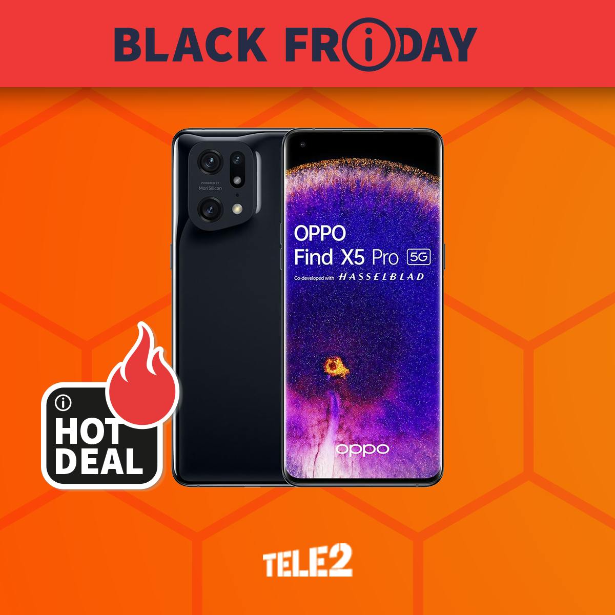 Als je een tweejarig Tele2-abonnement in combinatie met een nieuwe OPPO Find X5* afsluit, bespaar je in totaal 150 euro op de abonnementsprijs. Dit bedrag is uit verschillende onderdelen opgebouwd. Ontvang maandelijks drie euro korting, betaal geen aansluitkosten en profiteer van een gratis upgrade naar het vliegensvlugge 5G-netwerk. Overigens is deze aantrekkelijke Black Friday-aanbieding alleen weggelegd voor snelle beslissers. De actie loopt namelijk tot en met maandag 28 november. Met 20 GB mobiele data en 200 beltegoed beschik je over een ruime bundel. Kortom, gebruik dit fraaie toestel onderweg veelvuldig!