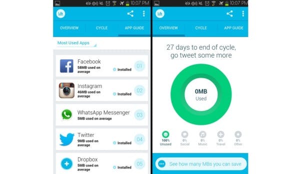 Als je meer data en tracking opties wilt dan je apparaat of provider aanbieden, kun je een app van derden gebruiken - zoals Onavo Extend - om je data gedetailleerder bij te houden. De app is voor zowel Android als iOS gratis beschikbaar, en biedt uitgebreide maandelijkse verbruiksrapportages en dataplan analyses - informatie die je kan helpen om te bepalen of je alle data waar je maandelijks voor betaalt gebruikt. Onavo Extend "breidt ook je datapakket uit" door inkomende en uitgaande data te comprimeren waardoor je in totaal minder data verbruikt.