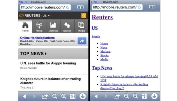 Lightgewicht browsers zoals TextOnly kunnen websites terugbrengen tot enkel de tekst.