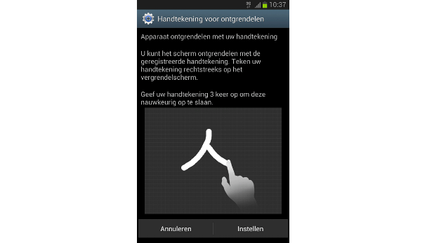 Deze optie is wat zeldzamer en is toegevoegd aan enkele toestellen van Samsung. Het is een variatie op de patroonbeveiliging, maar waarbij de gebruiker helemaal vrij is om een vorm te kiezen. Samsung introduceerde deze variant bij zijn Note-serie van phablets en tablets. Gebruikers kunnen een handtekening gewoon met de vinger invoeren, de speciale S-Pen is niet nodig.