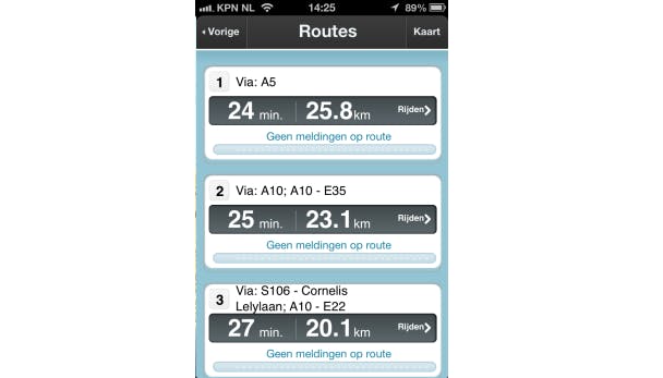 Tip 02 Waze stelt een aantal alternatieve routes voor.