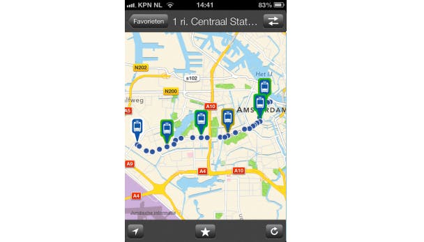 Kies op het hoofdscherm van de app een vervoersmaatschappij en vervolgens een lijn, waarna op een kaart met bolletjes wordt aangegeven waar de haltes staan. Ook is te zien waar de trams en bussen zich bevinden die momenteel onderweg zijn. Een kleurtje geeft aan of ze nog op schema liggen. Tik op een bus of tram om de aankomst- en vertrektijden per halte te zien. Perfect, zo weet je altijd waar je aan toe bent.