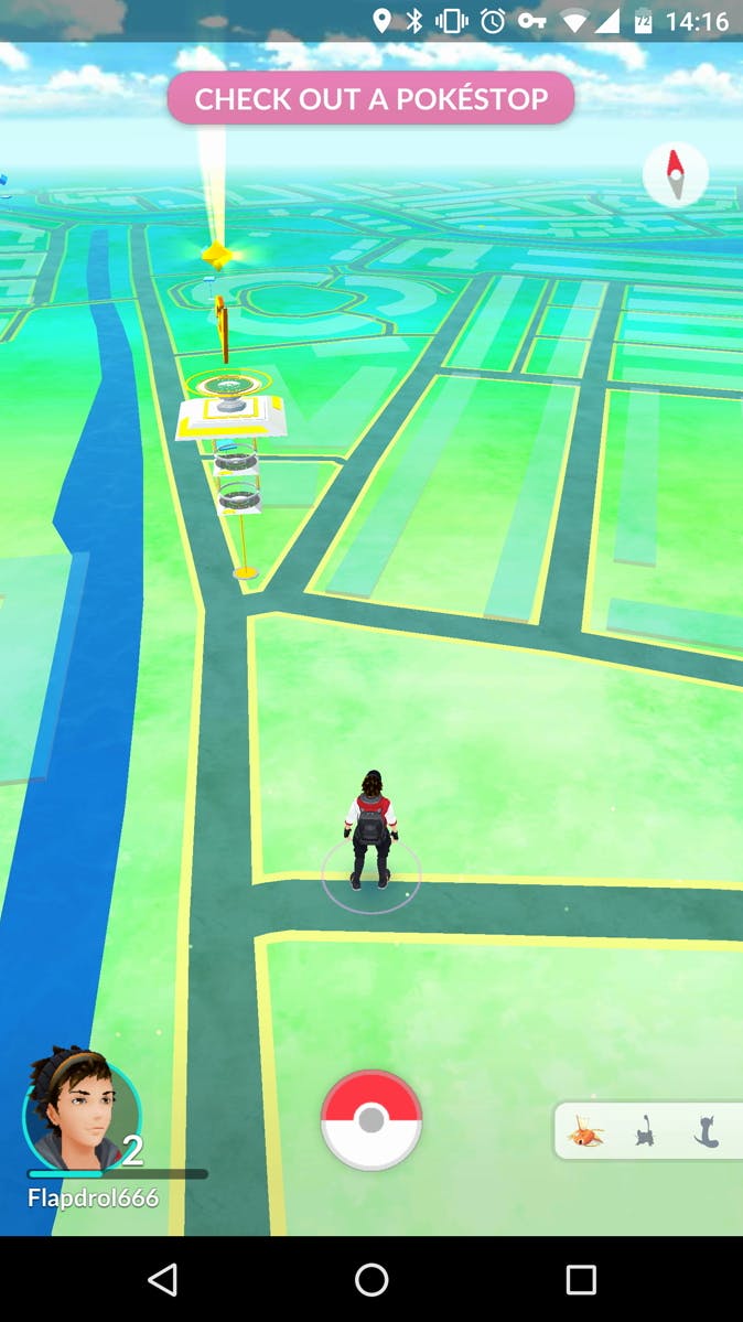 Deze kaart doet erg denken aan de mobiele game Geocaching of Ingress, waarbij je bij laatstgenoemde de omgeving om je heen probeert te veroveren voor je team. De vergelijking is niet ontoevallig, de ontwikkelaars van Ingress zijn ook betrokken bij Pokémon Go. Sterker nog, wanneer je genoeg ervaringspunten hebt mag je ook zo'n team kiezen: rood, geel of blauw.