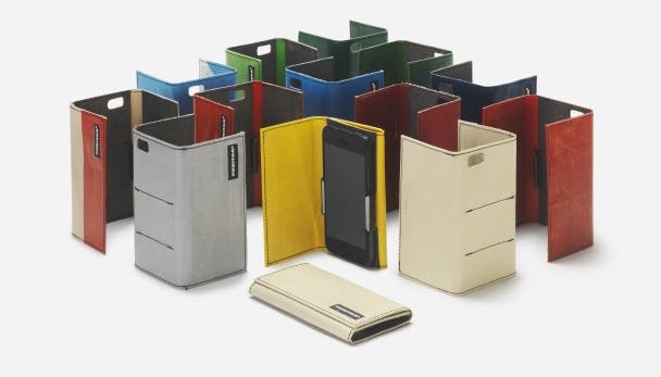 Het Zwitserse Freitag bewerkt oude vrachtwagenzeilen tot fraaie hoesjes, rugzakken en sleeves. Deze F332 Folder heeft aan de binnenzijde twee comfortabele clips om je iPhone 5(s) snel in vast te klikken.