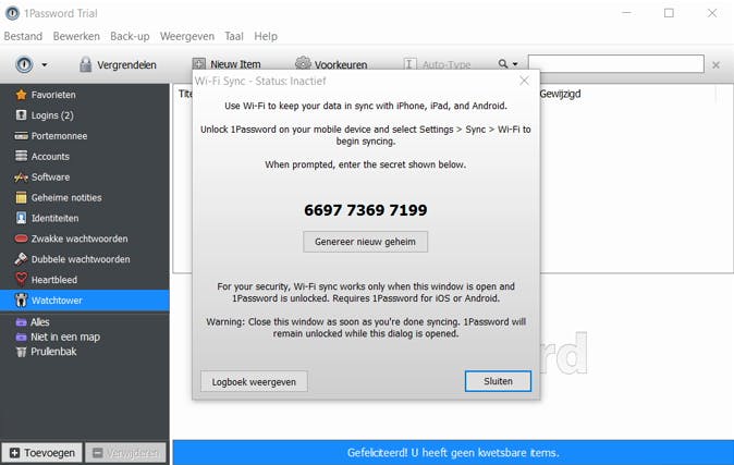 1Password-wachtwoorden kun je met je mobiel via wifi synchroniseren.