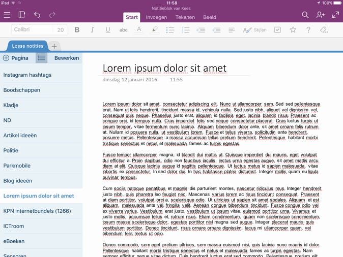 In het dagelijkse leven komen we duizend en één stukjes losse informatie tegen die we graag willen vastleggen voor later. Alles onthouden lukt niet, daar is het veel te veel voor. Vroeger schreven we alles in een notitieboekje of krabbelden we allerlei aantekeningen op een wirwar van losse velletjes. Met de app OneNote op je tablet en smartphone gaat dat een stuk eenvoudiger en breng je meteen structuur aan. Het is namelijk een gratis digitaal notitieboek waarin je alles kunt opbergen wat je maar wilt. Noem maar op: ideeën, boodschappen, takenlijstjes, tekstfragmenten van een website, plaatjes. Het mooie is dat OneNote ook als gratis app en als gratis programma voor je pc bestaat en je jouw notities ook via een browser kunt benaderen. Zo kun je het dus op een computer, tablet of smartphone gebruiken, maar ook via de browser van een willekeurige computer waarop je maar eventjes werkt.