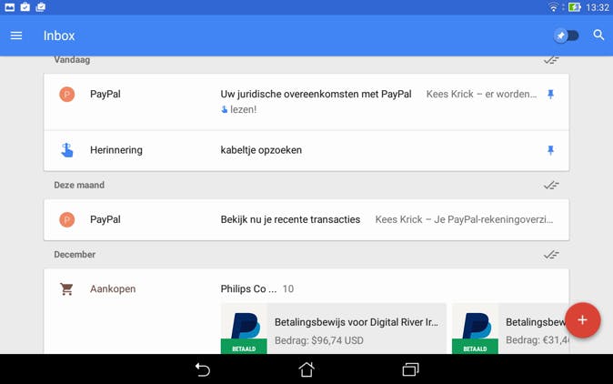 We ontvangen gedurende de dag heel wat mailtjes. Sommige berichten zijn urgent, andere kunnen best even wachten of hebben helemaal geen opvolging nodig. Feit is dat al die mail soms heel wat tijd opslokt en dat er ook weleens iets tussendoor glipt. Gebruik je Google's mailprogramma en wil je slimmer met je e-mail omgaan, dan is het een idee om over te schakelen van Gmail naar Inbox. In deze vrij nieuwe app van Google kun je bijvoorbeeld alle mail wegdrukken waar je later pas naar wilt of kunt kijken, zodat ze tijdelijk uit beeld verdwijnen. Bij dit zogenoemde snoozen kun je een datum en tijdstip, maar ook een locatie opgeven, waarop de e-mail spontaan weer tevoorschijn komt. Je kunt ook herinneringen aan berichten koppelen, bijvoorbeeld dat je iemand wilt bellen of op kantoor aangekomen een bijgesloten document wilt uitprinten. Verder kun je zogenaamde bundels aanmaken, waarin soortgelijke mail automatisch gegroepeerd wordt. Op een computer ga je via de browser naar http://inbox.google.com om met Inbox te werken.