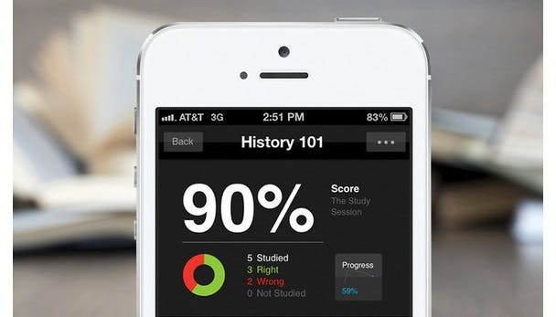 Als je eenmaal je studieboeken hebt en alle opgegeven hoofdstukken gelezen hebt - dat ga je natuurlijk netjes doen, en zeker voordat het de eerste helft van het trimester voorbij is - kan het handig zijn om een studiehulp te hebben. Geloof het of niet, de goede oude flashkaart is nog altijd handig, en wie wil er bovendien zoveel papier verspillen? StudyBlue (gratis: iOS en Android) is een geweldige flashkaart app waarmee je je school en vakken kunt invoeren, en die vervolgens een lijst met studiegidsen aanbiedt. Studiegidsen van andere gebruikers zijn gratis, terwijl die van StudyBlue 9 dollar per stuk kosten (of je kunt voor 48 dollar een jaarabonnement op de pro versie kopen).