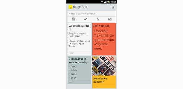 Met Keep gaat Google de concurrentie aan met diensten als Evernote. Notities die je normaal op een post-it krabbelt of even naar jezelf mailt, kan je voortaan kwijt in Keep. In ieder geval: als je gebruikmaakt van een smartphone of tablet met Android, of graag een webinterface gebruikt. Er zijn geen apps voor iOS, Windows 8 of extensies voor browsers beschikbaar.