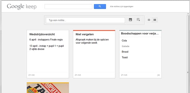 De notities die je in de Keep-app op een Android-apparaat maakt, worden direct in de webinterface getoond.