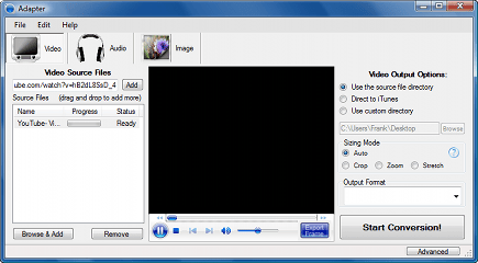 Bij de Windows-versie moet u na installatie nog een extra component toevoegen, maar dat kunt u automatisch laten uitvoeren. Vervolgens hoeft u alleen nog de url in te voeren van de downloadlocatie van het gewenste bestand. Het is ook mogelijk om een lokaal opgeslagen bestand te selecteren en om te zetten. Eventueel kunt u het resultaat in het midden van het scherm bekijken. Kies vervolgens een van de Output Options, zoals een map , iTunes of een telefoon, en kies het gewenste formaat. Een klik op Start Conversion zorgt vervolgens voor de omzetting. Afhankelijk van de omvang van een film kan het tot ruim een uur duren voordat de omzetting gereed is en u het bestand kunt afspelen. Wie meerdere bestanden achter elkaar om wil zetten, voegt ze eenvoudig toe via Source Files. Hoewel het programma vooral handig is voor de omzetting van Flash-bestanden kan het veel meer formaten aan. Op de website van de makers ziet u met welke formaten Adapter overweg kan. Het programma wordt in hoog tempo doorontwikkeld en er worden voortdurend nieuwe formaten toegevoegd. Adapter kan niet alleen fims converteren; wie mappen met muziekbestanden of foto’s om wil zetten kan ook met het programma uit de voeten.