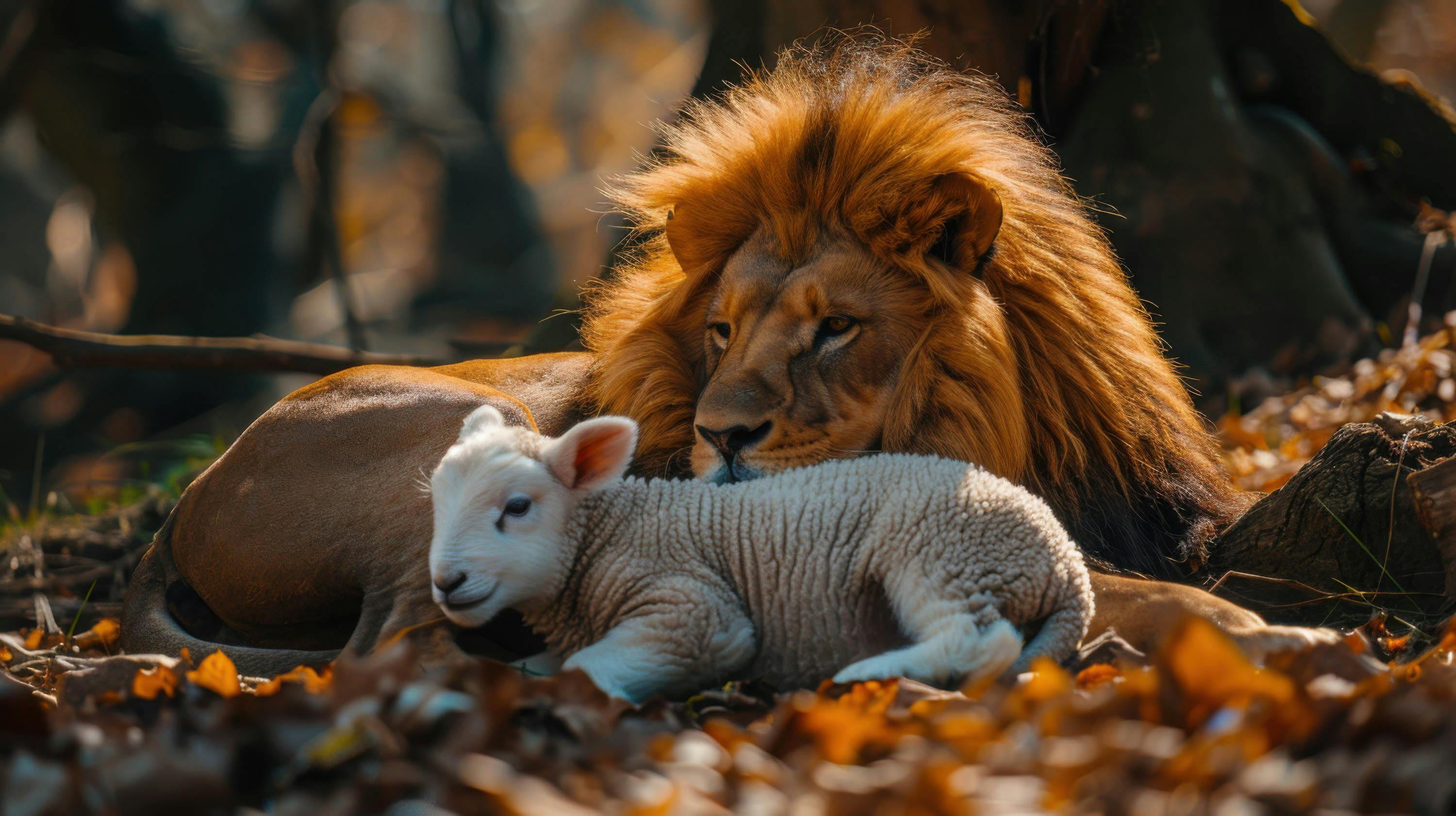 Bedenk je bij het zien van een afbeelding tot slot of het logisch is wat je ziet. In het onderstaand plaatje zie je een leeuw en een lammetje gebroederlijk naast elkaar liggen. In het echte leven zou het lammetje allang lamsbout zijn. Wat doet de koning van de jungle trouwens in een herfstbos in plaats van op de savanne? En sinds wanneer lijkt een leeuw (gemiddelde gewicht rond de 150 kilo) maar een heel klein beetje groter dan een babyschaapje (dat een paar maanden na zijn geboorte misschien 25 kilo weegt)? Wie wat beter kijkt, ziet dus dat deze foto niet echt is, maar door AI gemaakt is.