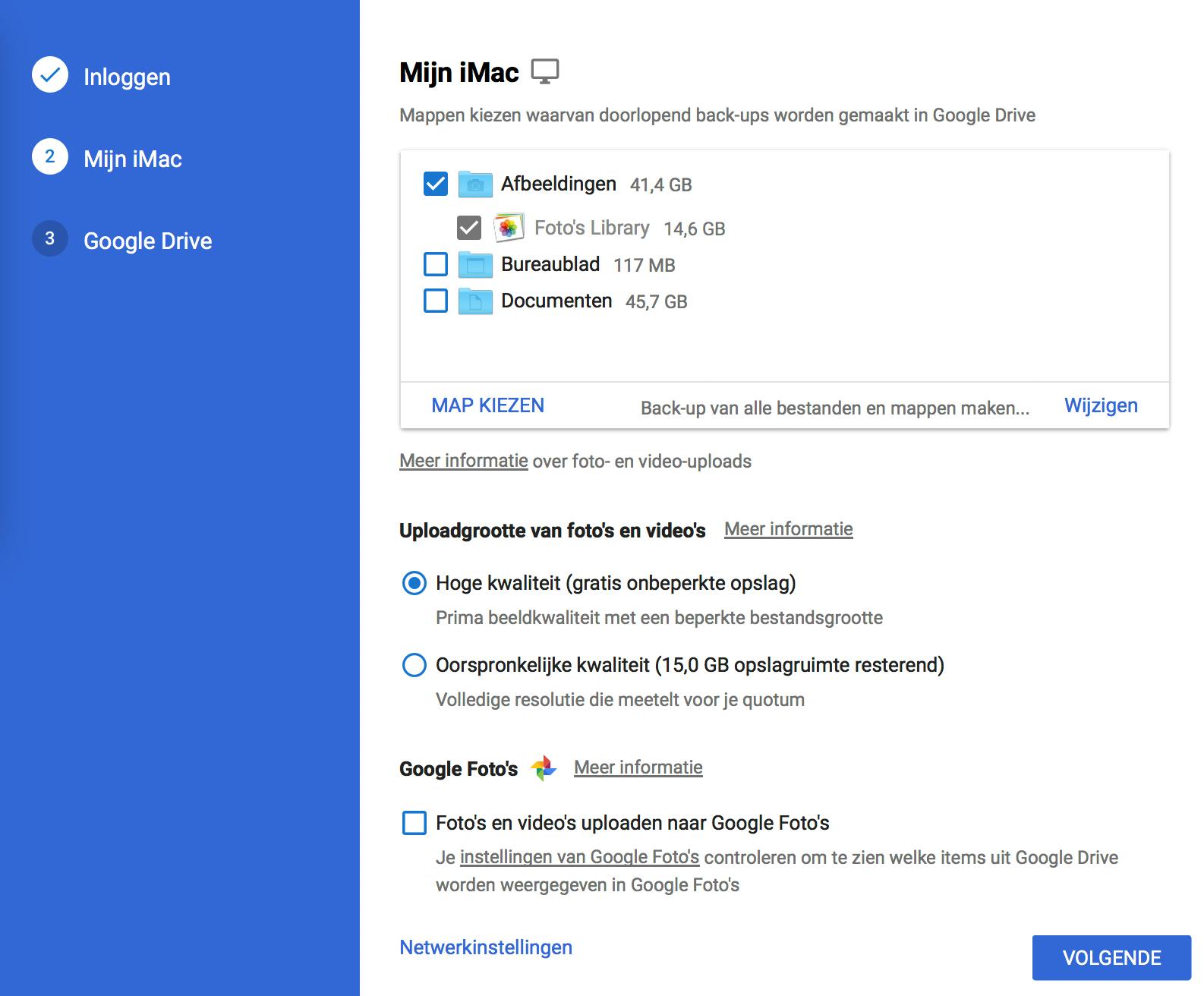 Google Foto’s is beschikbaar op Android, iOS en via je browser. Het enige wat je nodig hebt, is een Google-account. Wanneer je voor het eerst de website bezoekt, zie je een lege pagina. Via de knop Uploaden kun je je lokaal opgeslagen foto’s selecteren en naar de server sturen. Op de computer stelt Google voor een tool te installeren die voortaan een online back-up maakt van alle foto’s die op je computer terechtkomen. Doet Google dat niet, dan kun je deze desktop uploader ook gewoon downloaden. Nadat je bent ingelogd, geef je aan van welke bronnen en mappen Google de bestanden automatisch moet overhevelen. Staat de map met foto’s die je wilt syncen niet in de lijst, dan kun je die toevoegen met de knop Map kiezen.