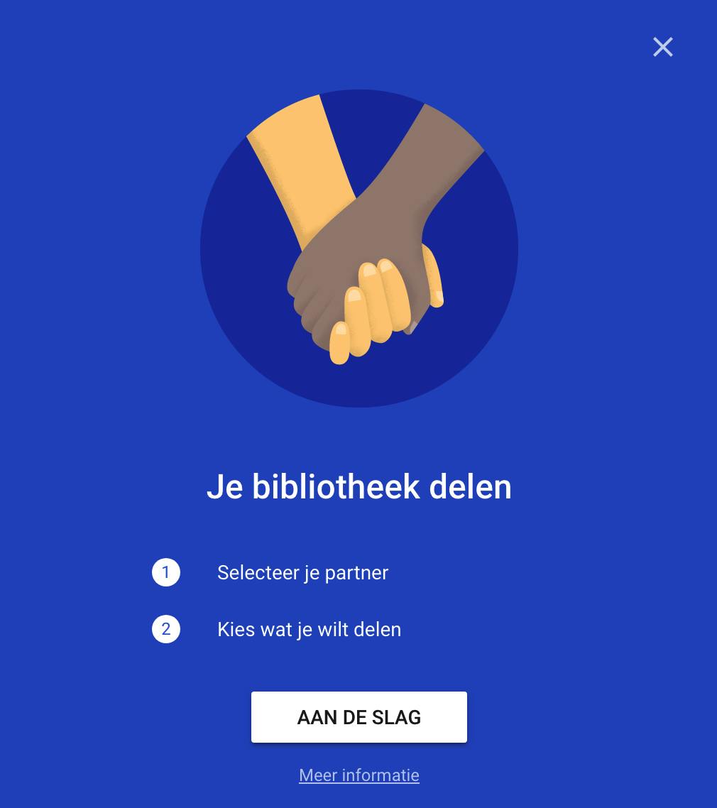Wil je met je partner meer delen dan één enkel album, dan kun je een partneraccount aanmaken. Open daartoe de webpagina van Google Foto’s, klik linksboven op het hambugermenu en klik op Partneraccount toevoegen. Je voert eerst de naam of het e-mailadres van je partner in. Vervolgens beslis je of je partner alle foto’s vanaf vandaag mag zien, of dat hij/zij ook toegang krijgt tot de oudere foto’s. Daarna klik je op Uitnodiging verzenden. Om toegang te krijgen tot de gedeelde bibliotheek moet je partner ook een Google-account hebben.