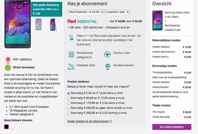 Tip 18 Aan de rechterkant zie je hoeveel aansluitkosten je moet betalen en dat de thuiskopieheffing in het tarief is inbegrepen.