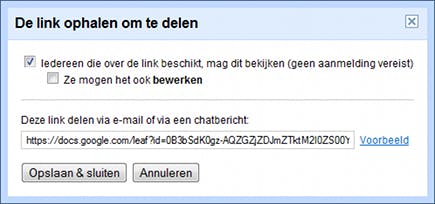 Het mooie van de nieuwe mogelijkheden van Google Documenten, is dat u nu heel eenvoudig alle soorten bestanden met andere mensen kunt delen. U kunt dit op meerdere plekken regelen, zowel op de downloadpagina van een bestand, maar ook in het overzicht van al uw bestanden. Als u op de downloadpagina van een bestand bent, klikt u op Delen / Mensen uitnodigen. Vul onder Uitnodigen een of meerdere e-mailadressen in en typ desgewenst een Onderwerp en een Bericht. Wilt u zelf een kopie van het bericht? Plaats dan even een vinkje voor Een kopie naar mezelf sturen. Standaard staat overigens Bewerken geselecteerd, wat dus inhoudt dat de genodigden de bestanden kunnen aanpassen. Wilt u dit niet, kies dan voor Weergeven. Klik tot slot op Verzenden om de e-mail te versturen.