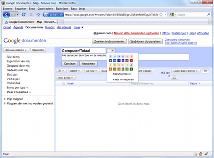 U kunt trouwens ook hele mappen delen, dit werkt op bijna identieke wijze manier als bij het delen van bestanden, alleen kiest u nu voor Deze map delen. U kunt mappen makkelijker herkenbaar maken door gebruik te maken van kleuren. Als u een nieuwe map maakt, kiest u een kleur door op het menuutje naast de mapnaam te klikken. Bestaande mappen geeft u een andere kleur door deze eerst te selecteren en vervolgens de kleur te kiezen uit het menu.