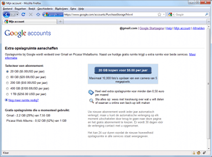 U kunt voor 5 dollar per jaar maar liefst 20 GB extra opslagruimte aanschaffen.