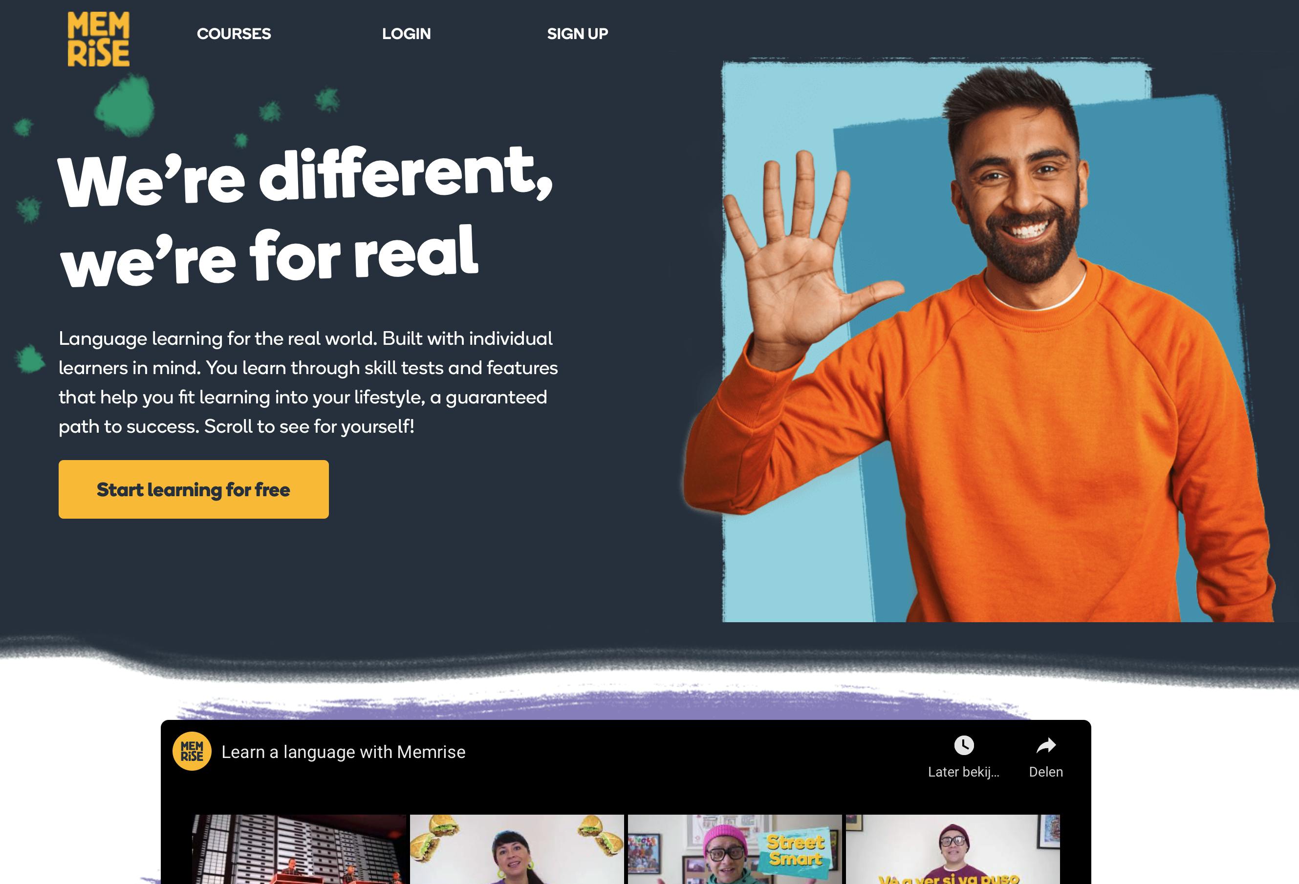 Memrise focust op locals: je ziet korte video’s van mensen die in hun eigen taal dingen uitleggen. Leuk, want zo leer je niet meteen een lokaal accent, je leert ook feitjes van het land waar diegene zich bevindt.