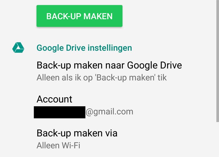 De back-up die je automatisch van je Android laat maken wordt online opgeslagen en kun je terugvinden in Google Drive. Open de Drive-app en open het menu-paneel, bij het onderdeel Back-ups kun je precies zien van welke toestellen een back-up is gemaakt. Ook in de browser op je pc kun je de back-ups op Google Drive terugvinden.