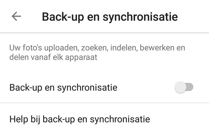 Je wilt natuurlijk ook graag je foto's en video's meenemen. Wederom kan Google je hierbij helpen. Open hiervoor de Foto's-app, die standaard op Android-telefoons aanwezig is. Tik rechtsboven op de horizontale streepjes en kies Instellingen, Back-up en synchronisatie. Hiermee zorg je ervoor dat foto's automatisch naar de cloud worden gekopieerd.