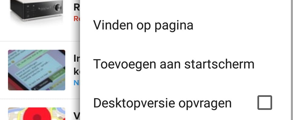 Heb je overigens een iPhone? Dan kun je hetzelfde trucje uitvoeren. Open Safari en surf naar een site. Tik dan onderin op het icoontje van een vierkantje waar een pijltje uitsteekt. Kies vervolgens Zet in beginscherm en geef de snelkoppeling een naam.