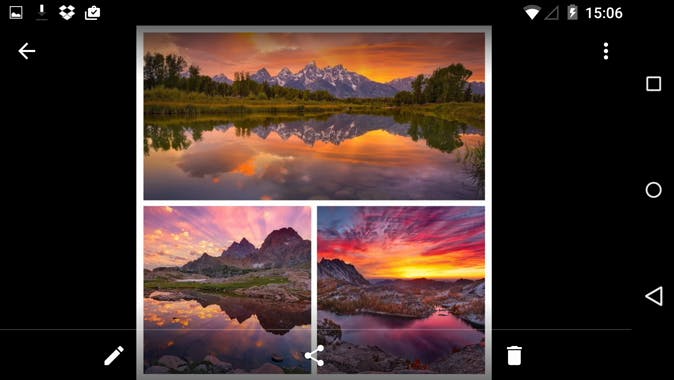 Wil je verschillende beelden laten zien? Dan kun je een mooie collage maken. Tik in het hoofdscherm van Foto's rechtsboven op de knop met de sterretjes (of het plusteken, afhankelijk van de Android-versie) en kies Gecombineerd. Selecteer nu minimaal twee en maximaal negen beelden en klik in de rechterbovenhoek op Maken. Enkele ogenblikken later krijg je de collage te zien. Deze kun je vervolgens nog bewerken of delen via sociale netwerken, e-mail of sms. Ideaal in combinatie met Instagram. Overigens moeten de foto's via de back-upfunctie in je Google-account staan.
