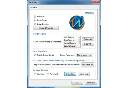 Google bewaart uw zoekactiviteiten liefst negen maanden. Het is niet ondenkbaar dat deze informatie in sommige situaties beschikbaar wordt gesteld aan adverteerders of de overheid. Als u daar geen prijs op stelt, installeert u de Firefox add-on TrackMeNot. Deze tool stuurt periodiek willekeurige zoekopdrachten naar zoekmachines als Yahoo!, Bing en Google. Hierdoor raken uw werkelijke zoekopdrachten verstopt tussen een gigantische hoeveelheid valse data.