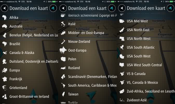 Ook handig is de mogelijkheid om binnen de app verschillende landen te kunnen downloaden. Voorheen moest je een andere app kopen, nu heb je voor die 20 of 45 euro de mogelijkheid om over de hele wereld te navigeren.