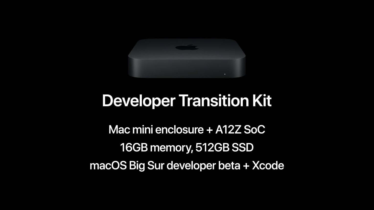 De zogeheten Apple Developer Transition Kit gebruikt naast de A12Z-processor 16GB werkgeheugen, een 512GB-ssd en draait op macOS Big Sur (developer bèta) met Apple's Xcode.