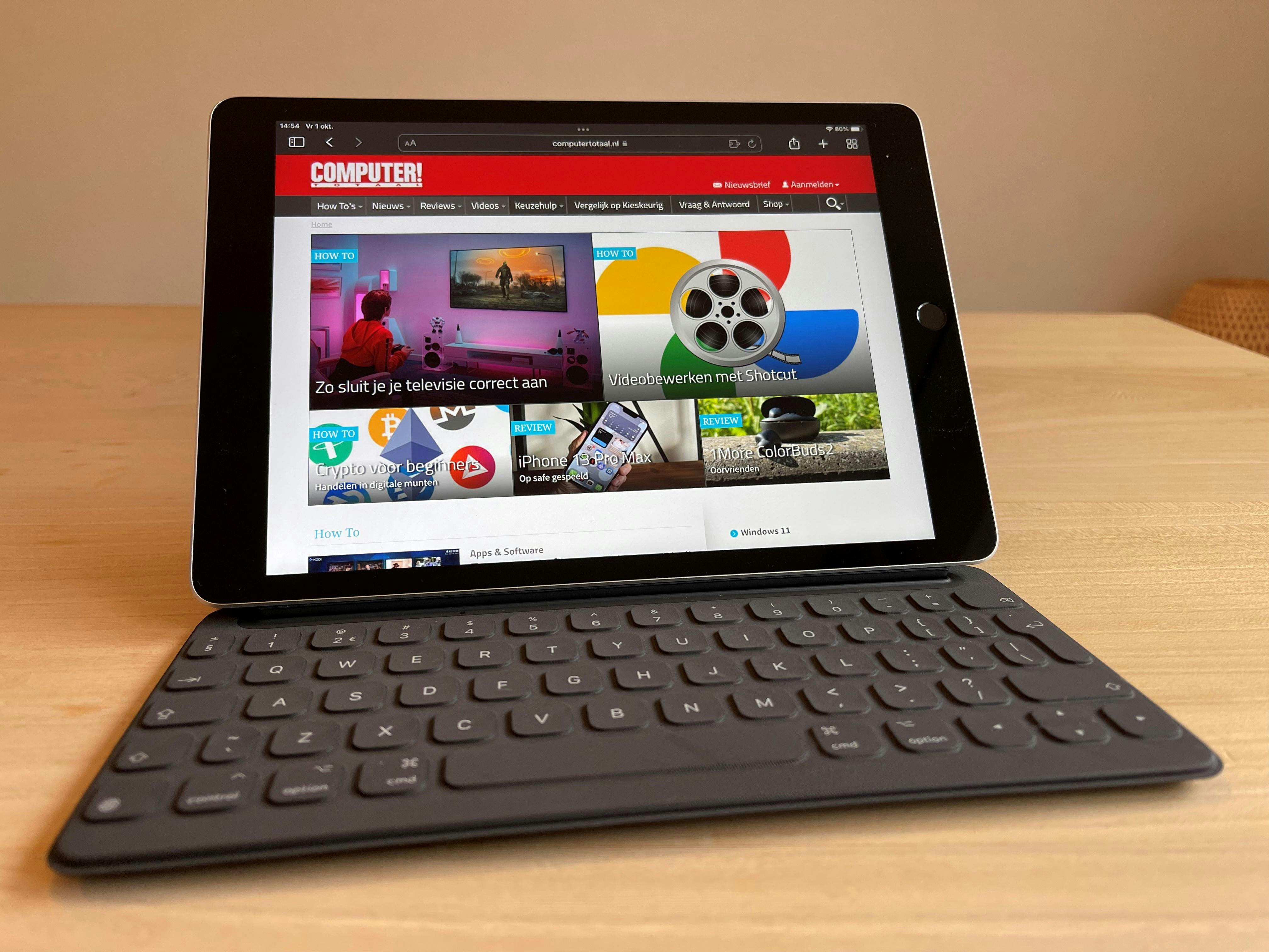Als kantoormaatje gaat de iPad 2021 ook makkelijk een werkdag mee. Dankzij de compatibiliteit met de Apple Pencil en de Smart Connector die al bij iPad 2019 werd geïntroduceerd, kun je Apple’s eigen pennetje en Smart Keyboard gebruiken om er een behoorlijk volwaardige kantoorlaptop van te maken. Persoonlijk kan ik goed zonder zo’n pennetje en qua toetsenbord zou ik liever de Logitech Slim Folio nemen. Die tikt een stuk prettiger en is veel goedkoper.