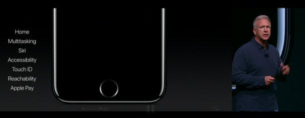 Ook de thuisknop is door Apple onder handen genomen. De knop is sneller gemaakt, en de functie van de knop is nu ook aan te passen in iOS 10. De knop is nu drukgevoelig, en kan dus het verschil voelen tussen hard en zacht drukken, en reageert volgens het bedrijf in real-time. Ook geeft de knop je tactile feedback, zodat je voelt wat je aan het doen bent, een functie waar ook andere ontwikkelaars gebruik van kunnen maken.