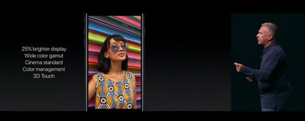 Het display is volgens Apple 25% helderder dan z'n voorganger, met een breder kleurbereik. Ook hiervoor geldt, dit is iets dat we graag met eigen ogen willen zien en vergelijken met de iPhone 6 en iPhone 6 Plus. Uiteraard bevat ook dit display net als z'n voorganger 3D Touch.